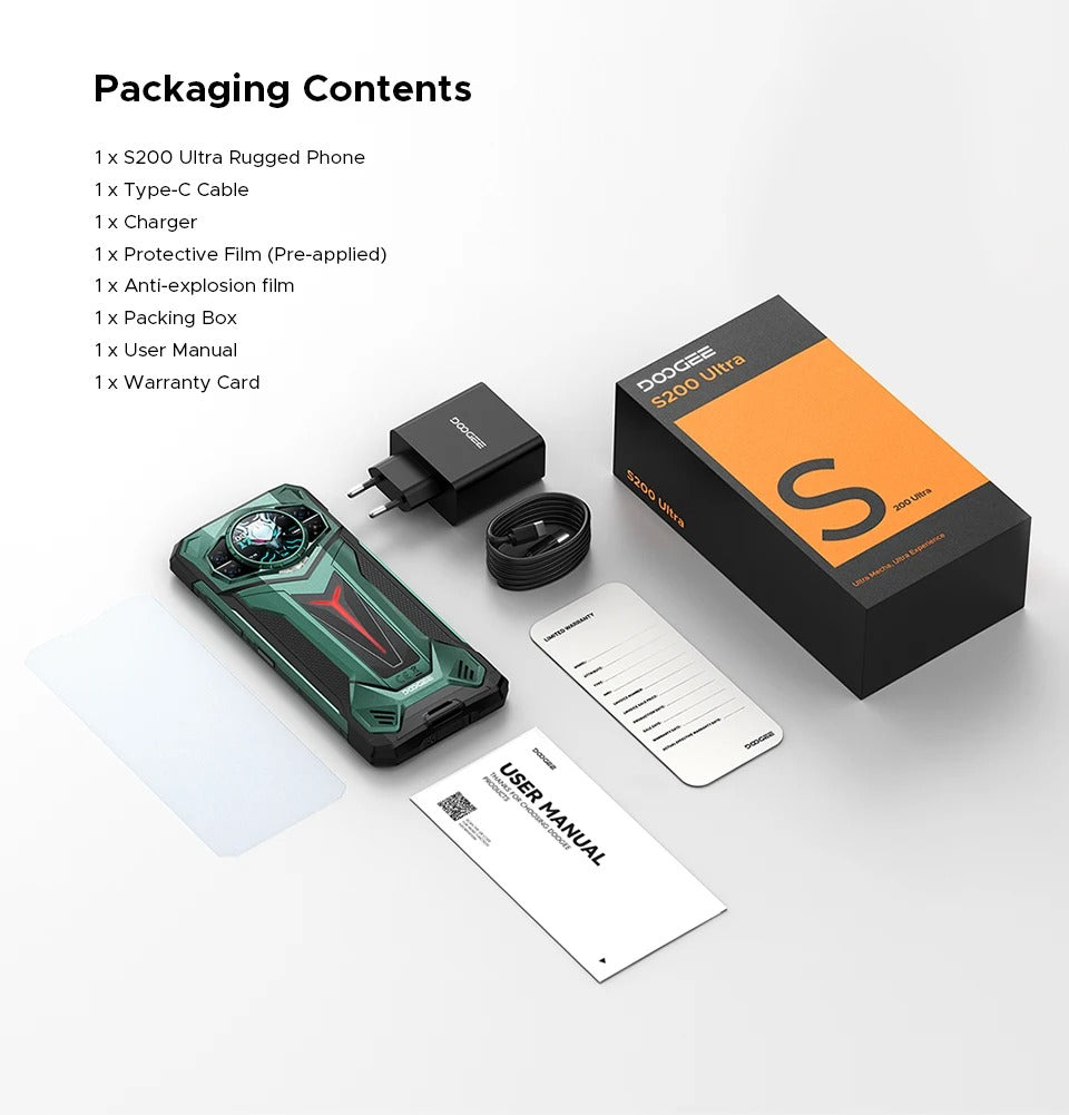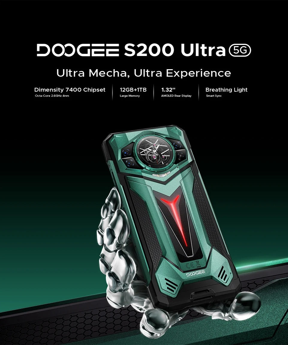 The DOOGEE S200 Ultra is a rugged, high‑performance 5G smartphone built for explorers, professionals and anyone who demands durability alongside premium specs. With a massive battery, advanced camera system, fortified IP‑certified build and a distinctive rear AMOLED display, it blends adventure‑ready toughness with modern functionality.