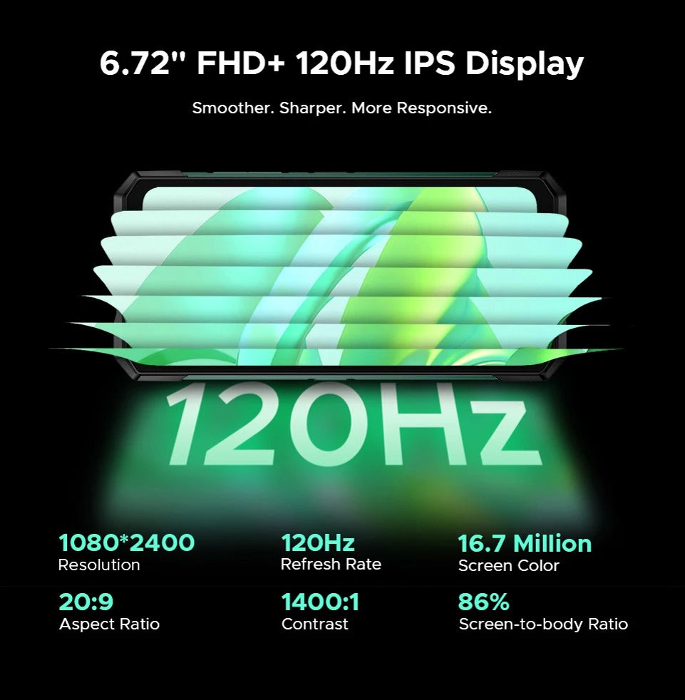 6.72″ IPS display at 120 Hz refresh rate, delivering smooth visuals.