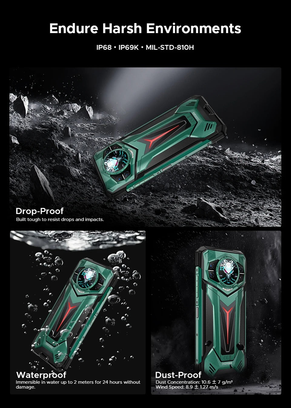 Rugged build certified to IP68/IP69K and MIL‑STD‑810H standards — protected against water, dust, shock and extreme conditions.