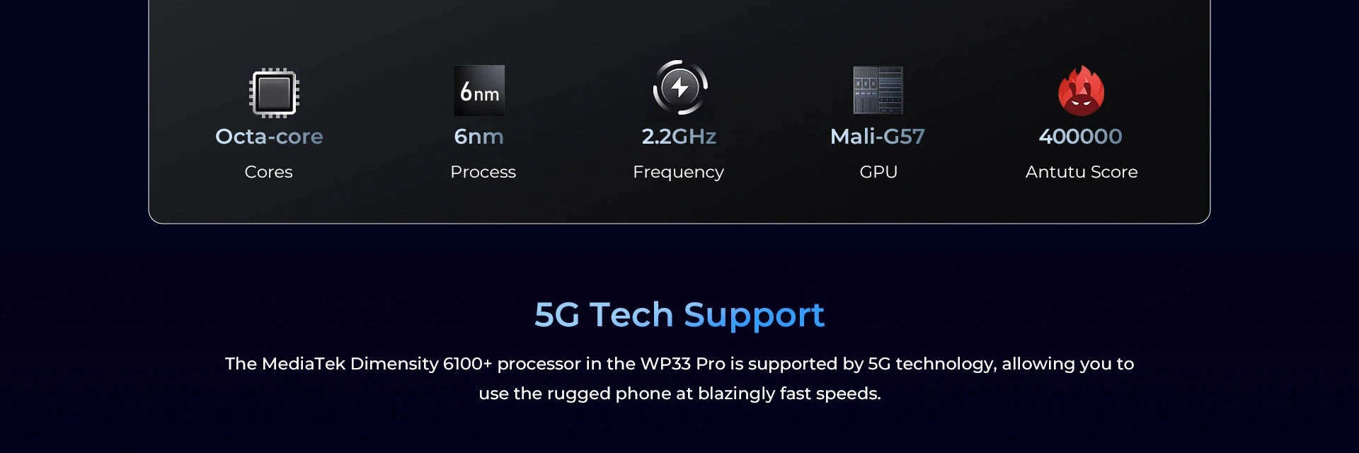 The Oukitel WP33 Pro 5G is a rugged smartphone built for durability, endurance and performance in challenging environments. It combines a large battery, loud‑speaker boost, 5G connectivity and a tough build — ideal for field work, outdoor adventures or anyone needing a device that takes abuse and keeps going.