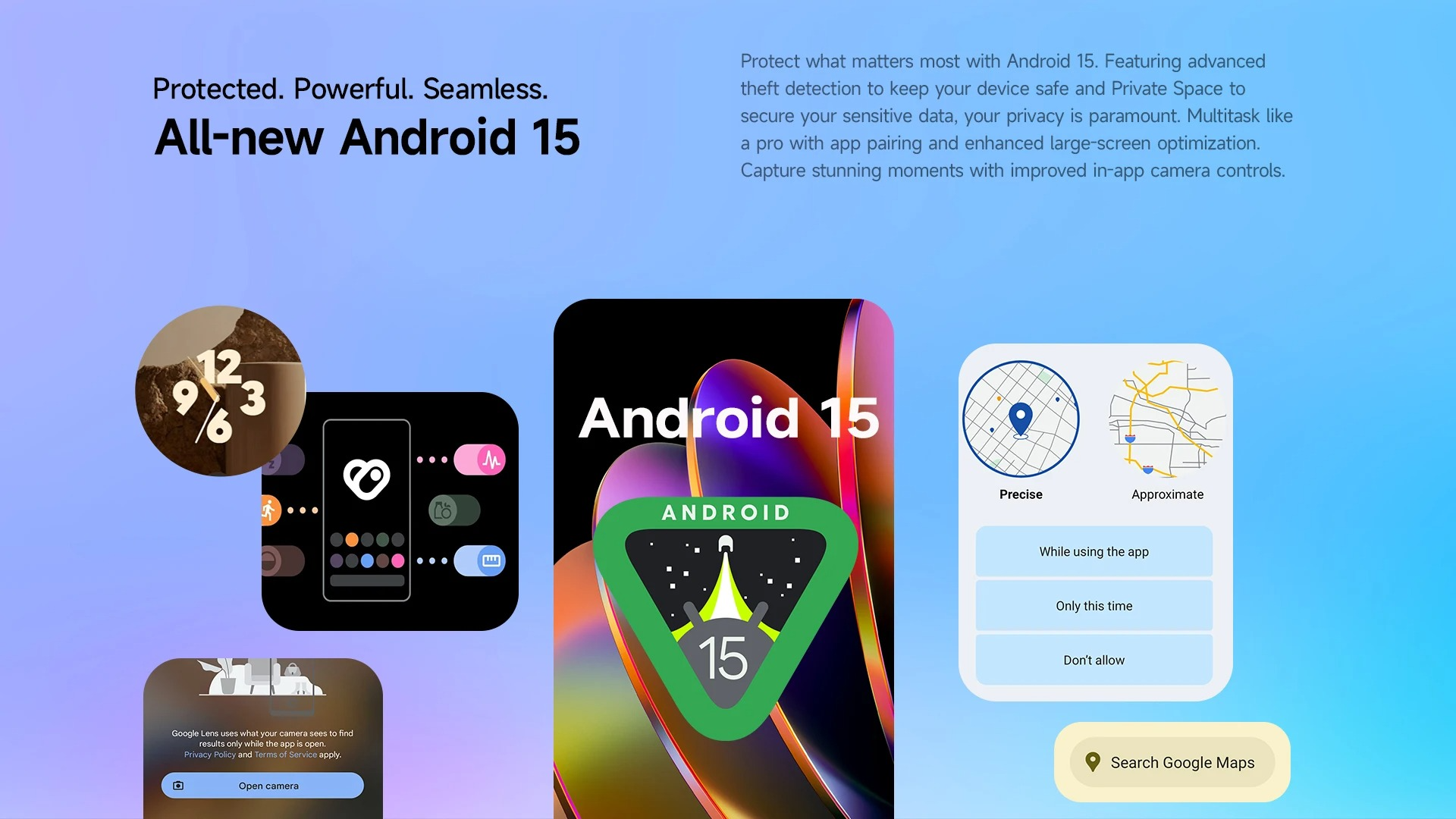 32 GB RAM + 512 GB storage (expandable to 2 TB) running Android 15 on a MediaTek Dimensity 7300 4nm processor — built for multitasking and storage‑rich usage.